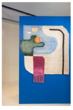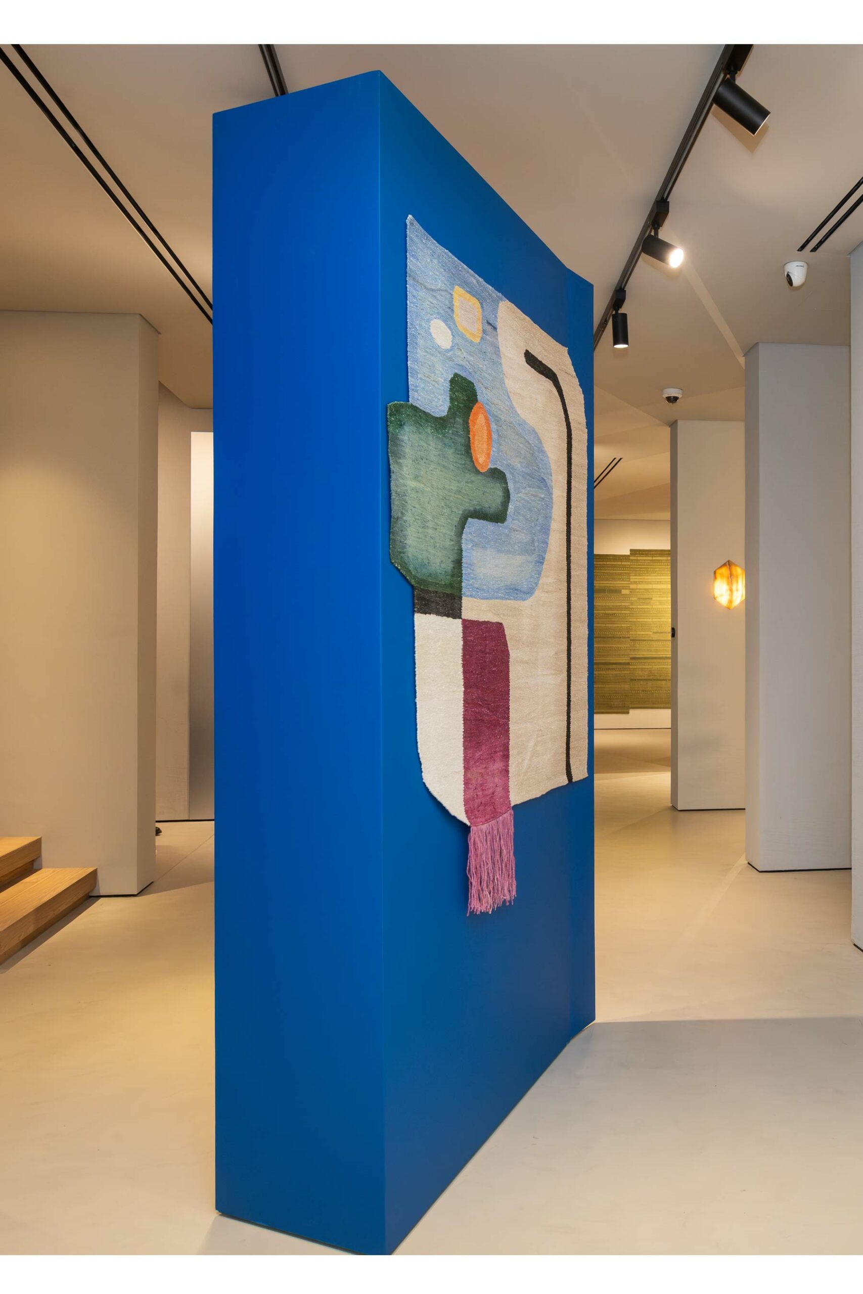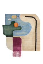 The Other Side rug features a bold abstract design with minimalist cubist shapes in warm tones of purple, pink, blue, beige, and off-white sand. Subtle green details and woolen fringes in thick, colorful yarn add depth and texture. Crafted in wool with layered textures, it merges modern artistry with timeless craftsmanship. A statement piece that brings creativity and character to any space.